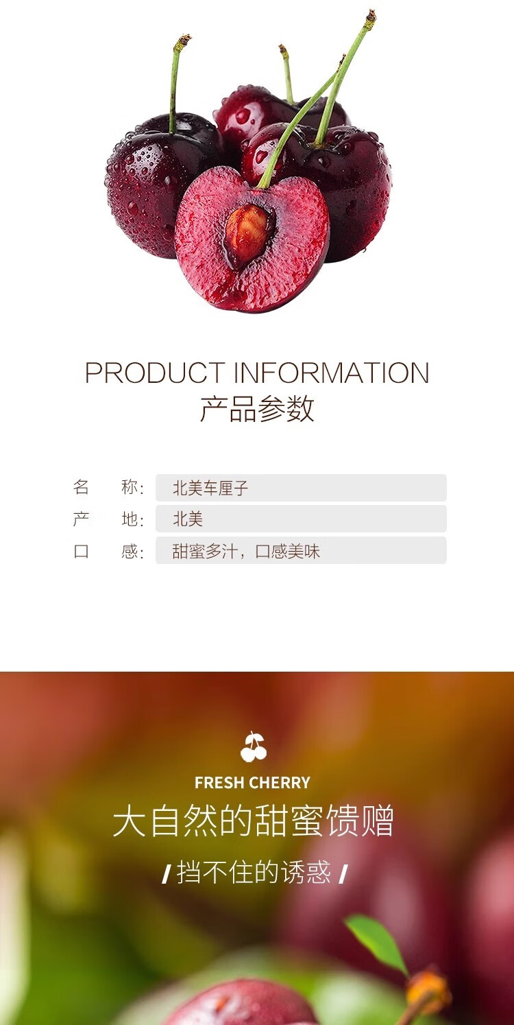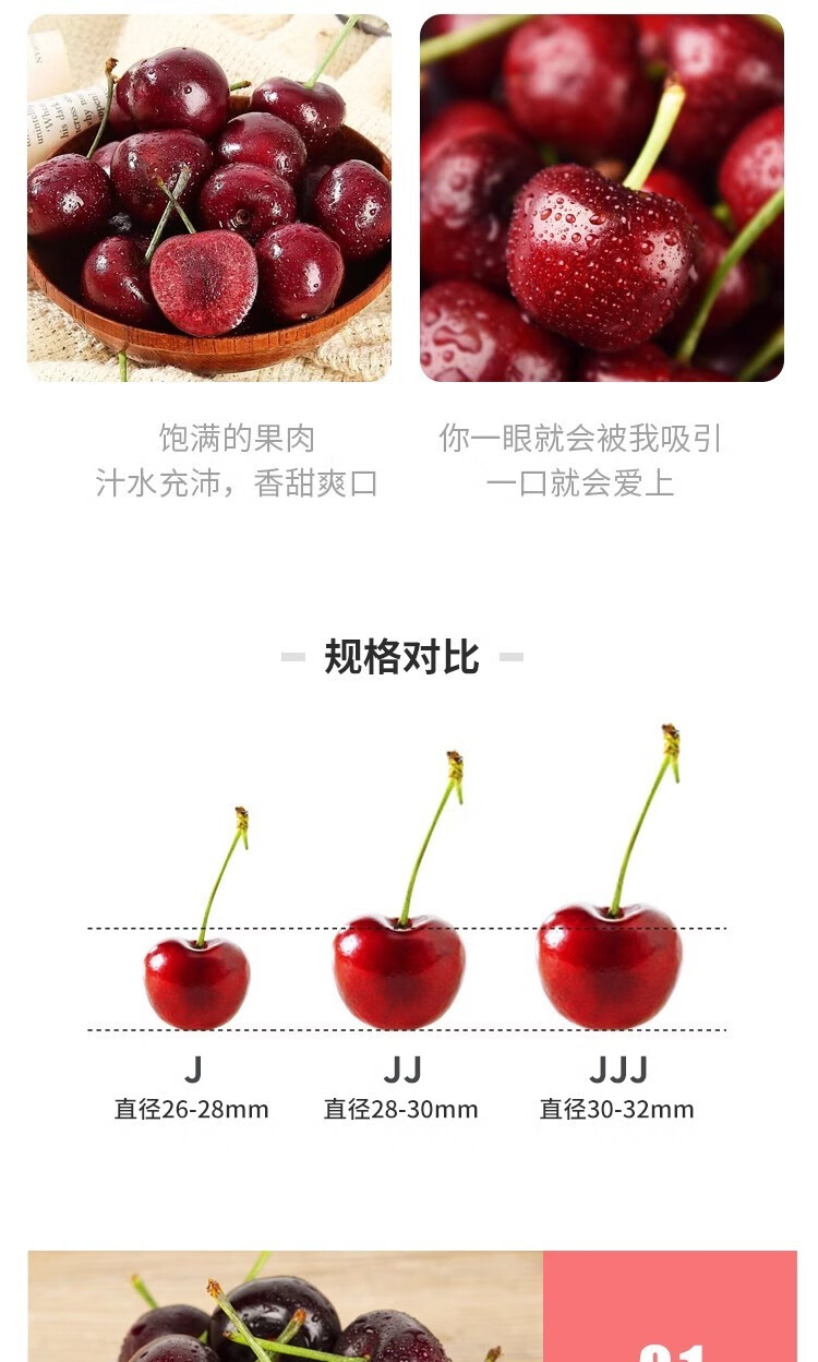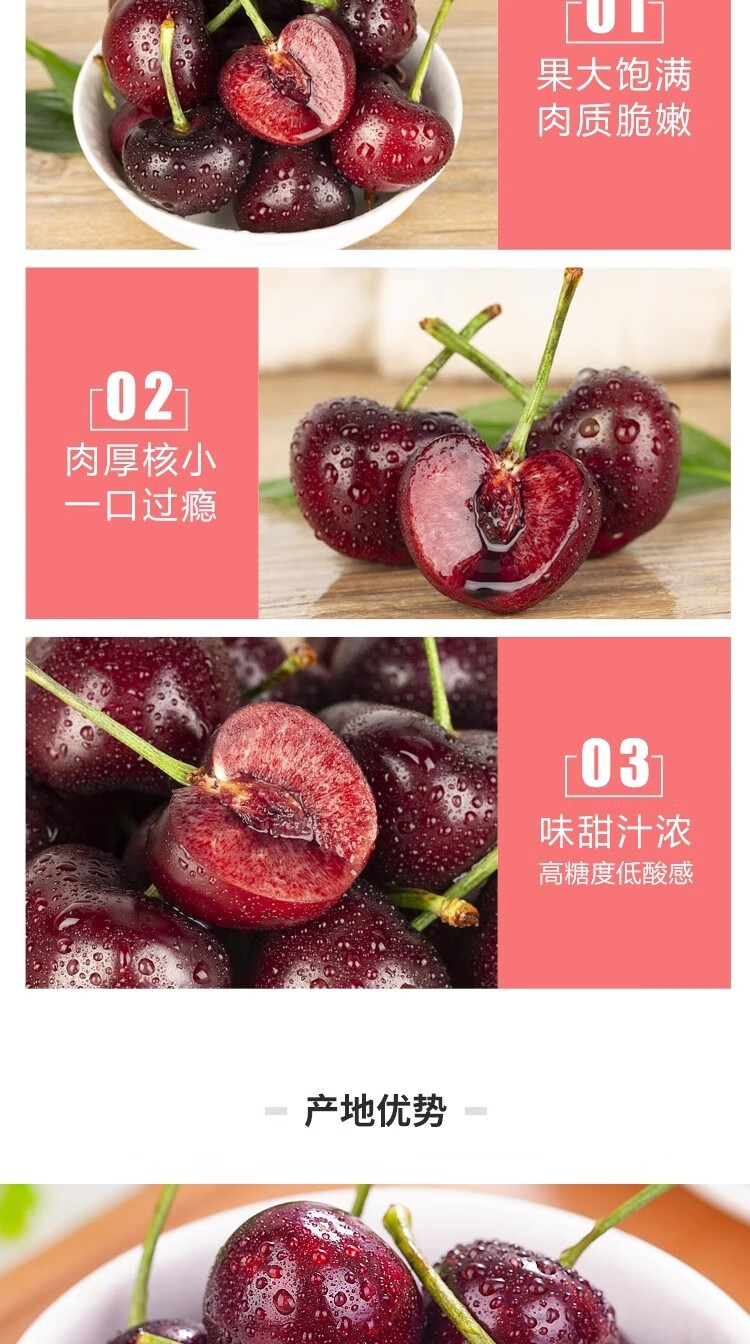 车厘子黑珍珠大樱桃1000g特大果4J32-34mm
