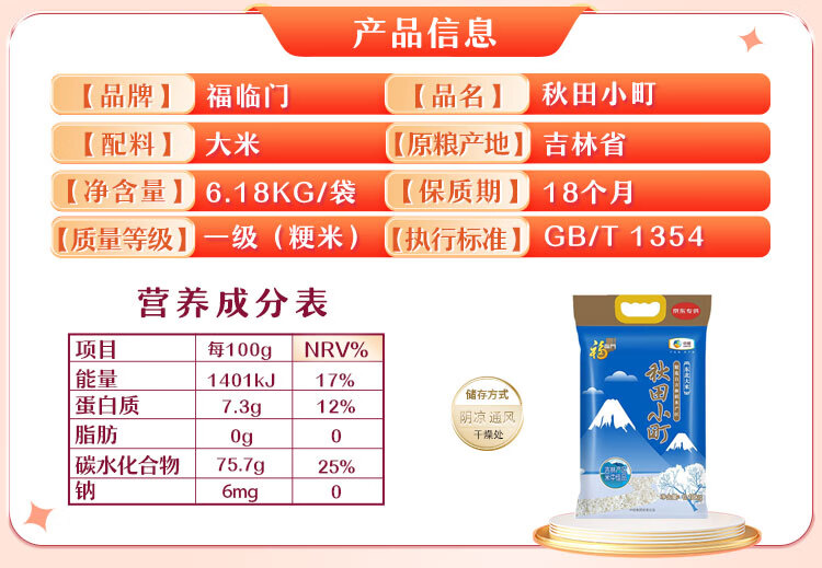 东北大米秋田小町6.18kg/袋
