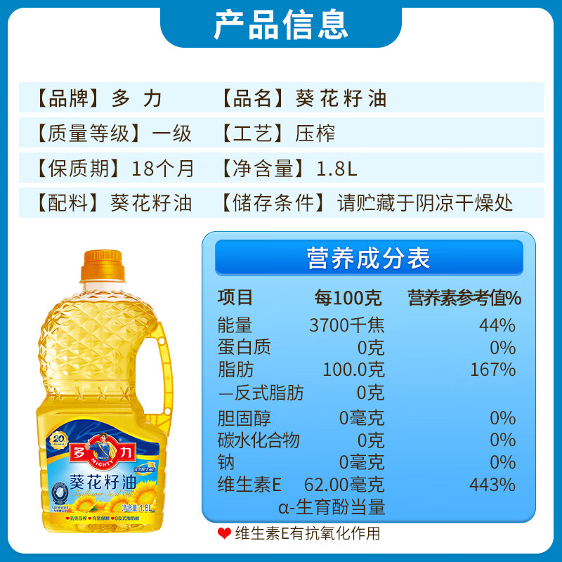 多力葵花籽油1.8L食用油