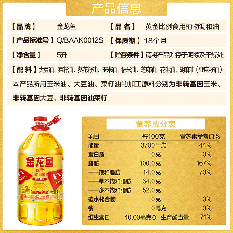 黄金比例食用调和油4L