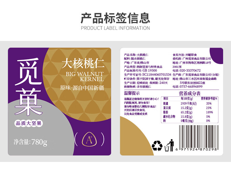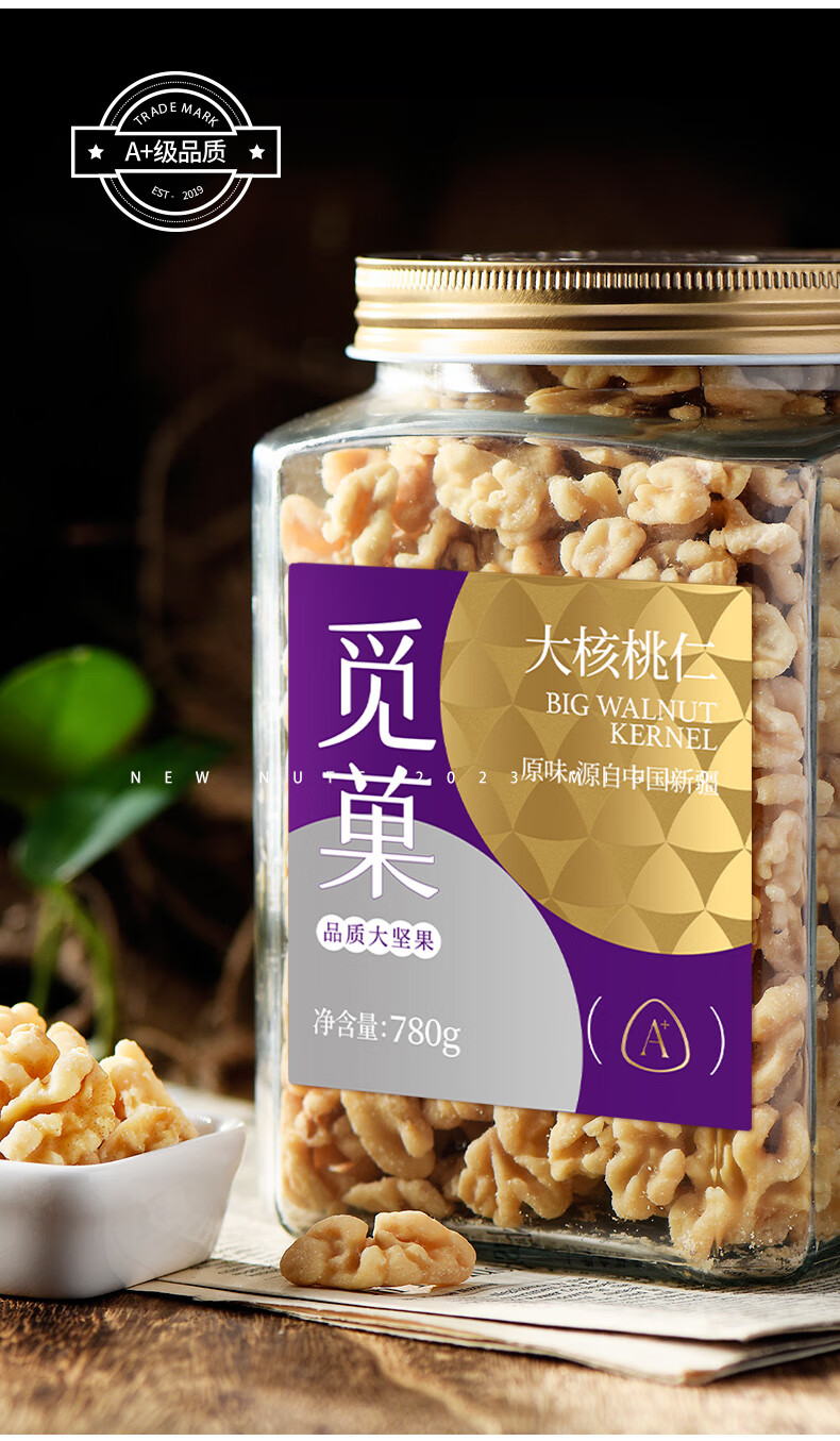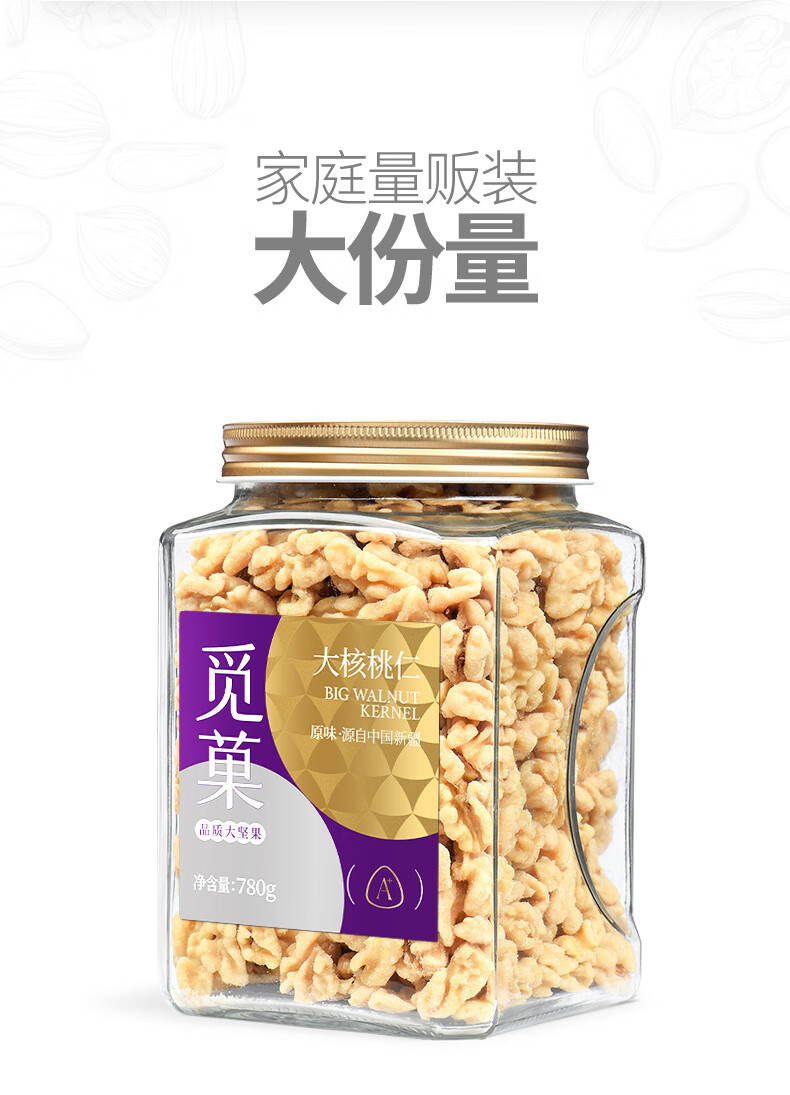 新疆核桃仁去衣特产坚果高端休闲零食780g/罐